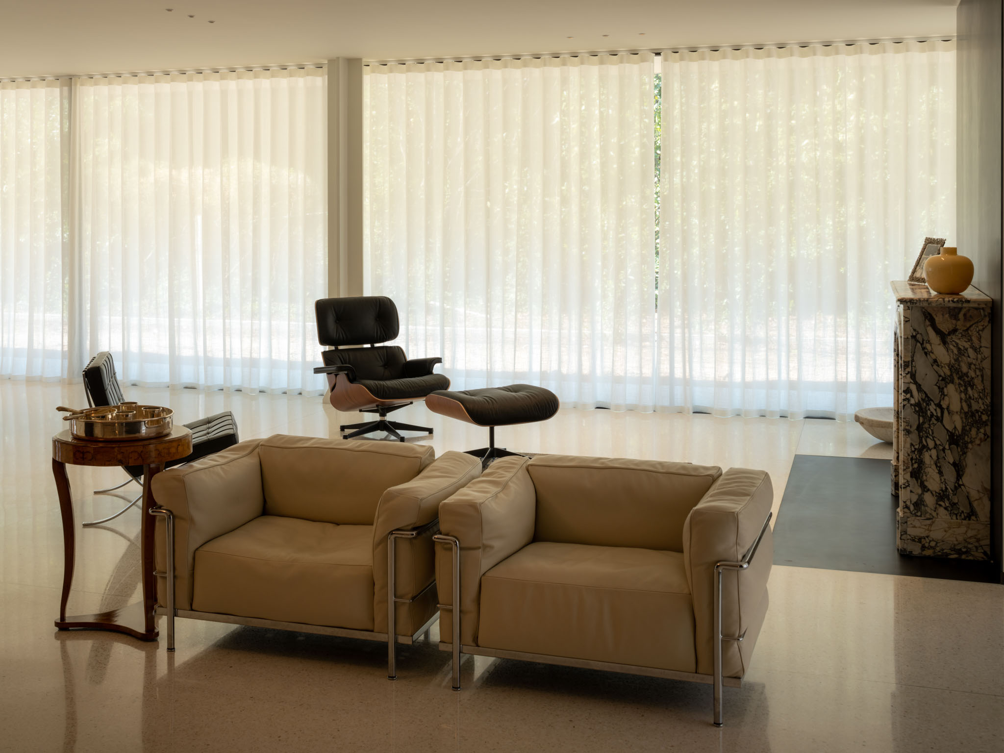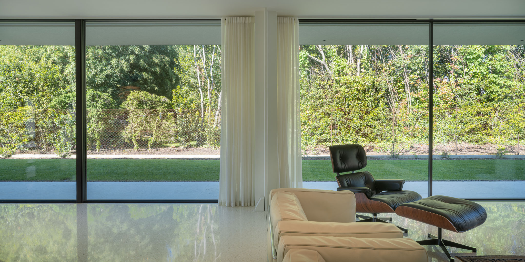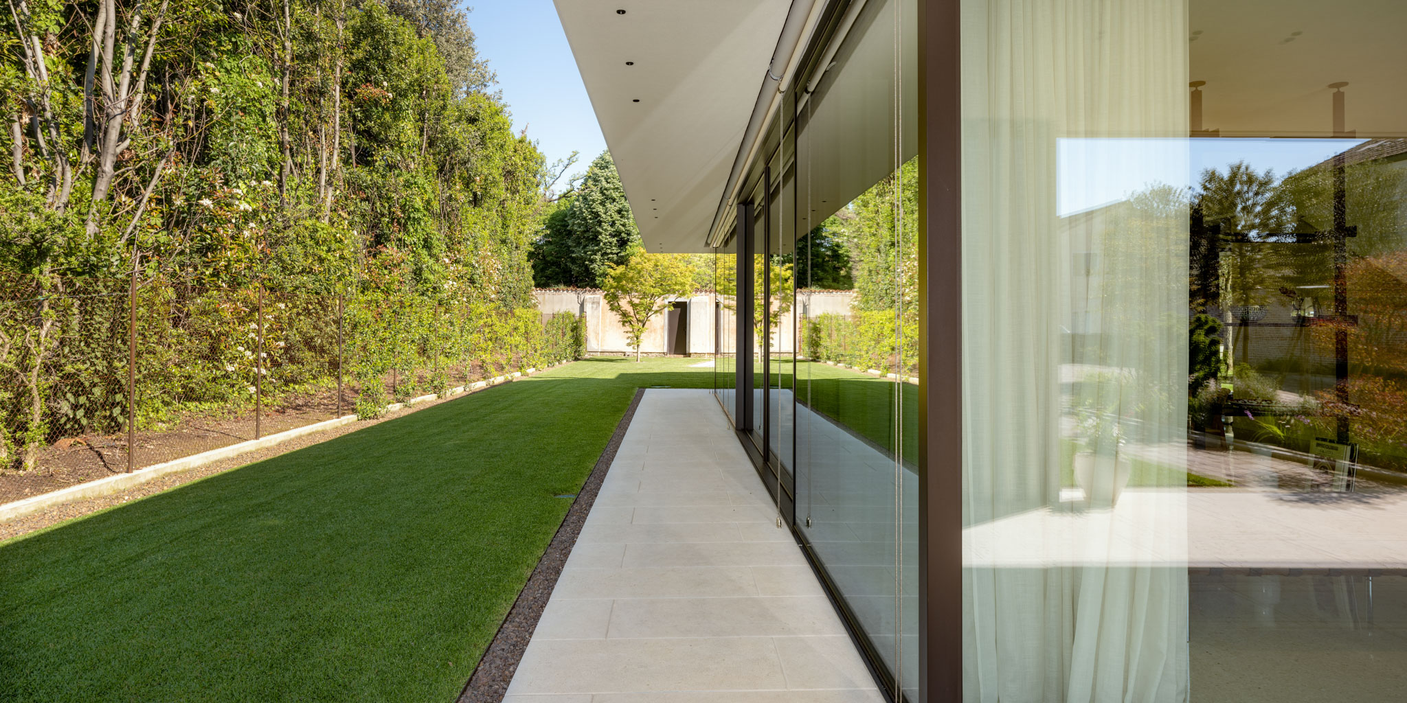 Il progetto di interior design di questa residenza si basa su alcuni principi che sono: la semplicità del segno e delle forme; la ricerca di una buona diffusione della luce; l’uso di materiali naturali; la relazione con gli spazi esterni. Il progetto architettonico, concepito dallo studio Archilab, fa parte di un intervento dove sono previsti, all’interno di uno spazio verde vincolato, tre nuovi volumi ed il recupero di un palazzo antico. La residenza in oggetto è uno dei nuovi volumi in cui l’architettura degli interni è stata parzialmente rivista in base alle esigenze dei proprietari. La base architettonica, chiaramente riferita ad elementi “miesiani”, funge da scena ad un progetto di interni nel quale la diffusione del colore bianco assume il ruolo di veicolo di luce all’interno dei singoli spazi e delle aree funzionali. L’alternanza del colore bianco avorio e delle superfici in legno creano una giusta contrapposizione fra segni minimalisti e della tradizione. In alcuni casi oggetti antichi donano agli spazi la memoria di dimore precedentemente abitate.